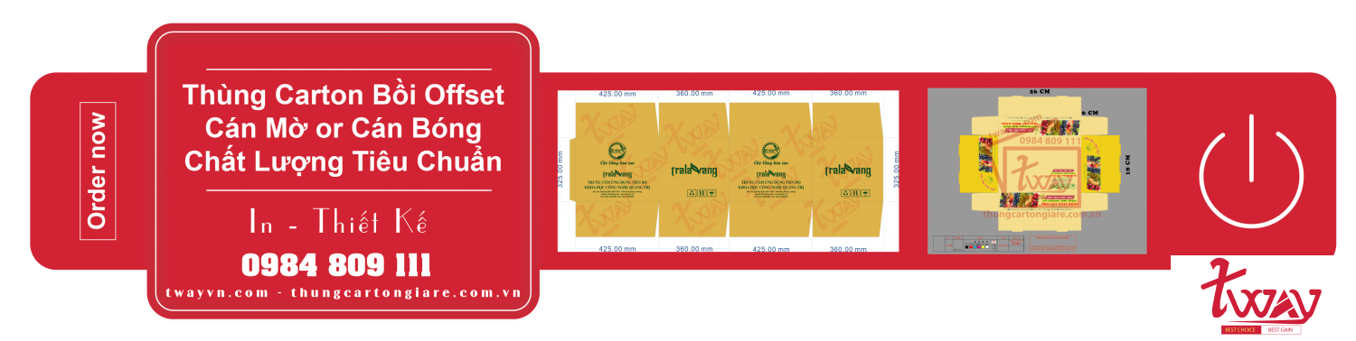 Tway luôn tự tin mang đến cho khách hàng dịch vụ in ấn thùng carton tốt nhất trên thị trường hiện nay. Công nghệ in ấn hiện đại, đôi ngũ nhân viên nhiều kinh nghiệm với ý tưởng sáng tạo dồi dào khách hàng khi tìm đến Tway sẽ cảm thấy thật hài lòng với những sản phẩm mà đơn vị chúng tôi sản xuất.